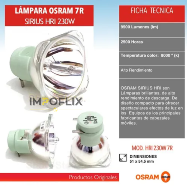 Lámpara SIRIUS HRI 230W OSRAM - lámpara 7R para cabezal móvil.